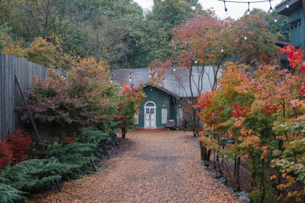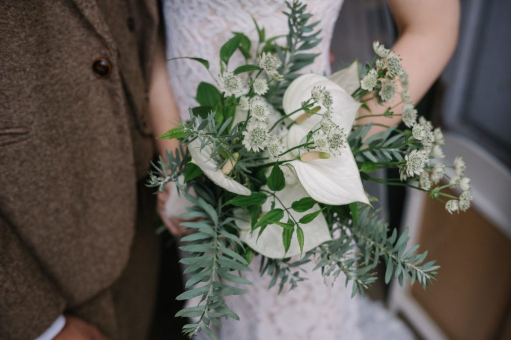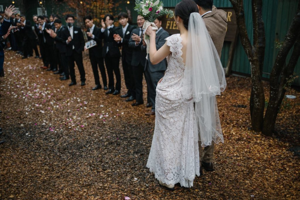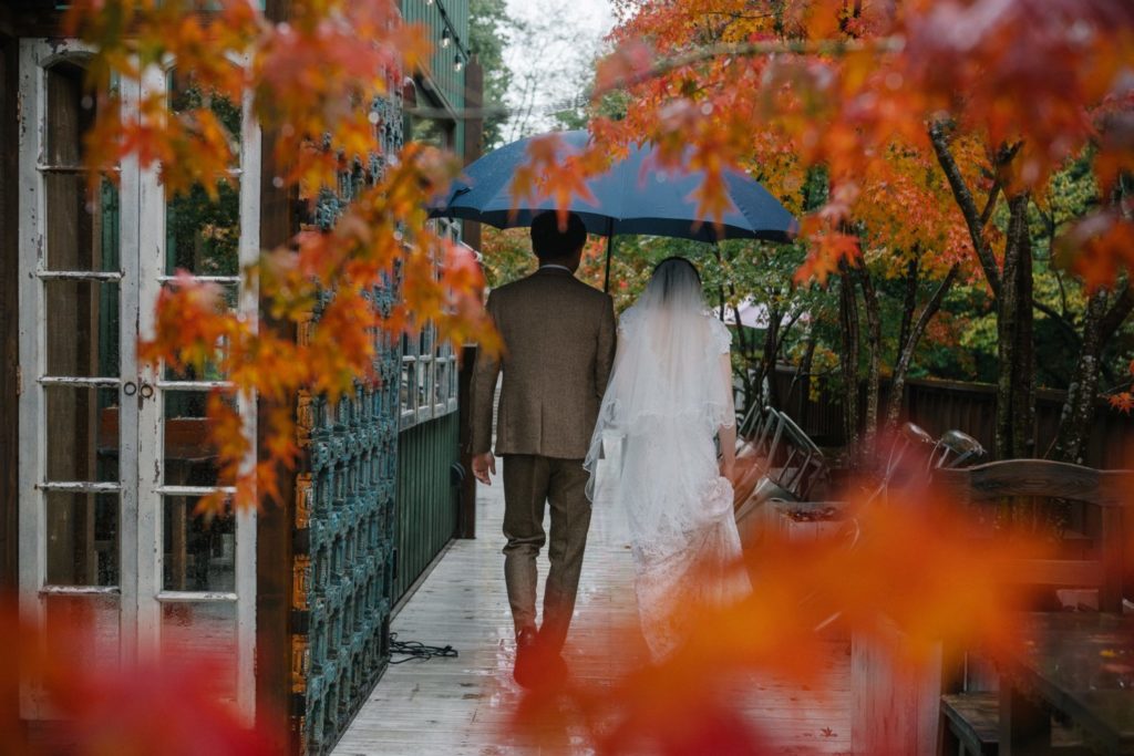 11月。秋の雨が降り注ぐ中、お花屋さんで行われたウェディング。